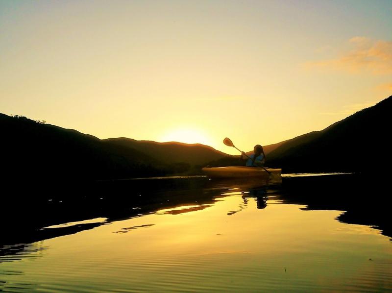 「アマニコ」の“サンセットマングローブカヌーと夜の森ツアー”は、カヌーで夕方に出発し、マングローブや山々が少しずつあかね色に染まっていく癒やしの時間を堪能できます。特に夕日が水面にも映り、一面が黄金色になるサンセットは必見!